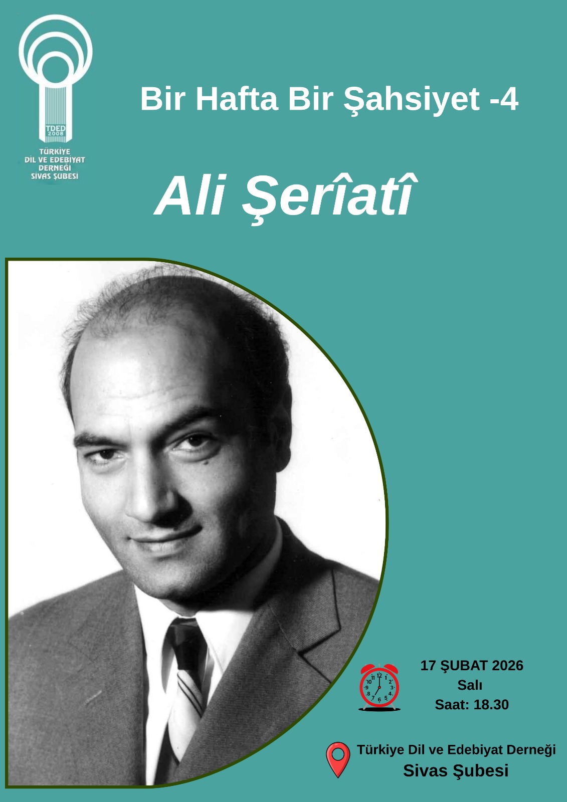 Anasayfa BİR HAFTA BİR ŞAHSİYET-4 BİR HAFTA BİR ŞAHSİYET-4 17/02/2026 Bir Hafta Bir Şahsiyet sohbetininin bu haftaki konusu Ali Şeriati'ydi. Sohbette Şriati'nin hayatı, fikirleri, ve kitapları müzakere edildi. Galeri